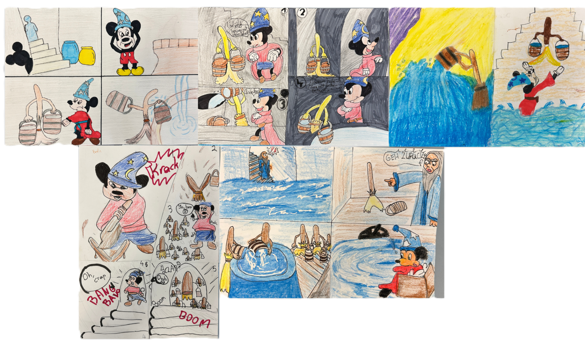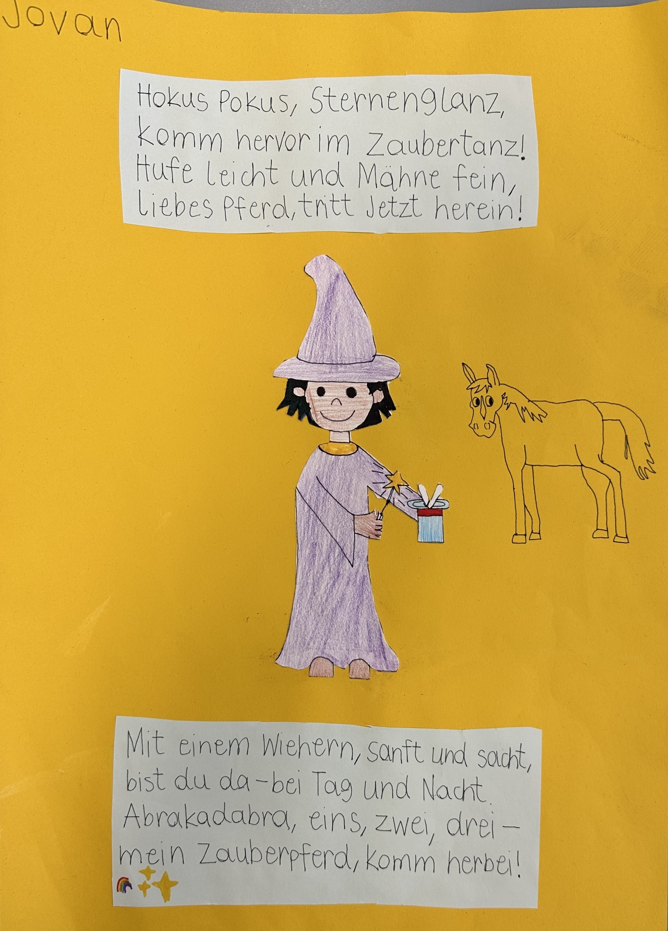 Im Deutschunterricht tauchte die Klasse 3a tief in die magische Welt von Goethes "Zauberlehrling" ein. Mit viel Kreativität gestalteten die Schülerinnen und Schüler anschließend ihre eigenen eindrucksvollen Zeichnungen zu der berühmten Ballade.